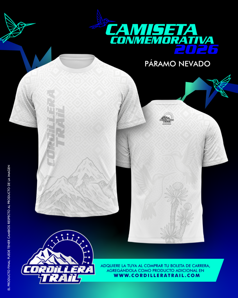 En Cordillera Trail Futuro entregamos una espectacular chaqueta de finalista, pero adicionalmente tienes la opción de comprar la camiseta conmemorativa de la edición.